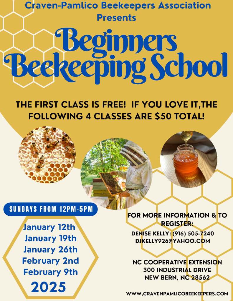 Classes will be held at the NC Cooperative Extension – 300 Industrial Drive. New Bern, NC 28562